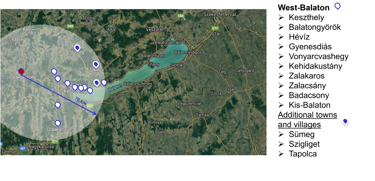 Zalaegerszeghez közeli és a valamivel távolabb fekvő tájak rengeteg felfedezésre váró látnivalót és élményt kínálnak az év minden időszakában. Nemzeti parkok, történelmi nevezetességek, gyógyfürdők csábítanak látogatásra, emellett gasztronómiai különlegességek, zamatos borok teszik teljessé az élményt. A pannon táj mélye igazi kincset rejt: a testre és lélekre egyaránt ható melegvíz, termálvíz várja a környék fürdőiben a pihenni, feltöltődni, gyógyulni vágyókat. Hévízen található Európa legnagyobb melegvizű tava: a hangulatos kisvárosban színvonalas wellness és medical wellness szállodák kínálják egészségmegőrző- és gyógyszolgáltatásaikat. Zalakaros a családosok kedvelt fürdőhelye, ahol gyógyászati centrum és fitness szolgáltatások mellett gyermekvilág, családos szaunák, fürdőpartik garantálják a gondtalan szórakozást. A közeli Kehidakustány gyógy- és élményfürdőjében igazi mediterrán hangulatba csöppenhetünk: a gyógyterápiák mellett gyermekprogramok is segítik a pihenést.